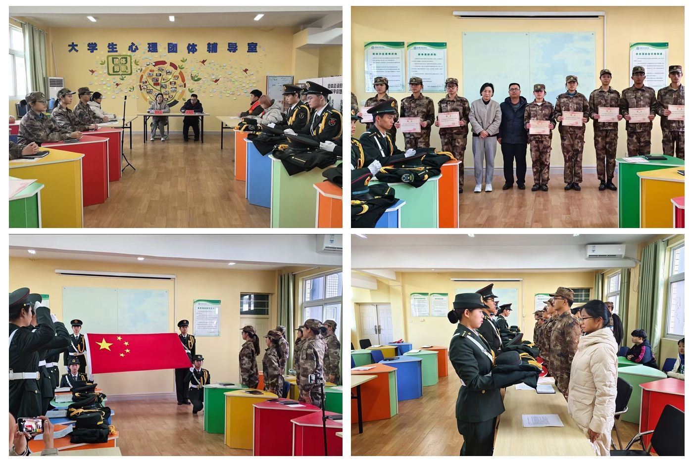 11月27日,我校国旗护卫队分别在凤阳校区大学生心理健康教育与咨询中心团体辅导室和龙湖校区“一站式”学生社区学生活动室举行第29届换届大会。党委学工部副部长、学生处副处长陈君君应邀出席并给予指导,校国旗护卫队第29届全体队员和第28届退役队员近百名同学参会。换届大会由党委学工部秘书、校国旗护卫队指导老师石志成主持。