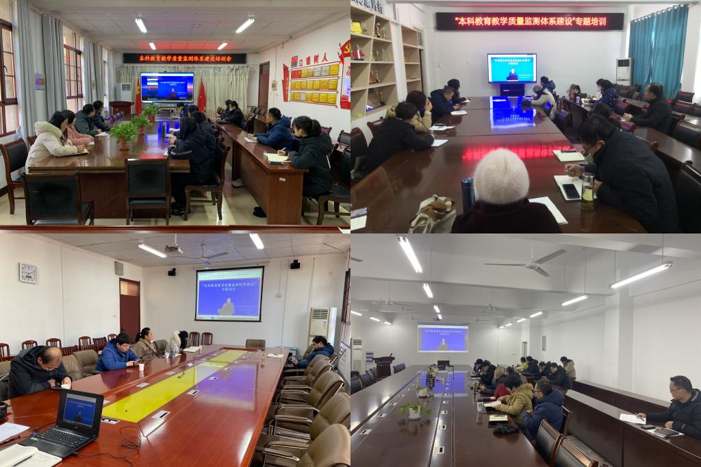 为深入学习贯彻党的二十大精神,帮助高校了解全国本科教育教学质量、同类院校发展,以及本科教育教学质量监测体系建设情况,推动高等教育高质量发展,2月15日上午,教育部教育质量评估中心以视频会议形式开展“本科教育教学质量监测体系建设”专题培训。全国836所高校,52家省级评估机构、教育科研机构、高教社团组织约36000人参加线上培训。我校各二级学院负责人、系(教研室)主任、专业负责人,教务处、督导考核办公室全体人员以及相关职能部门工作人员参加培训。