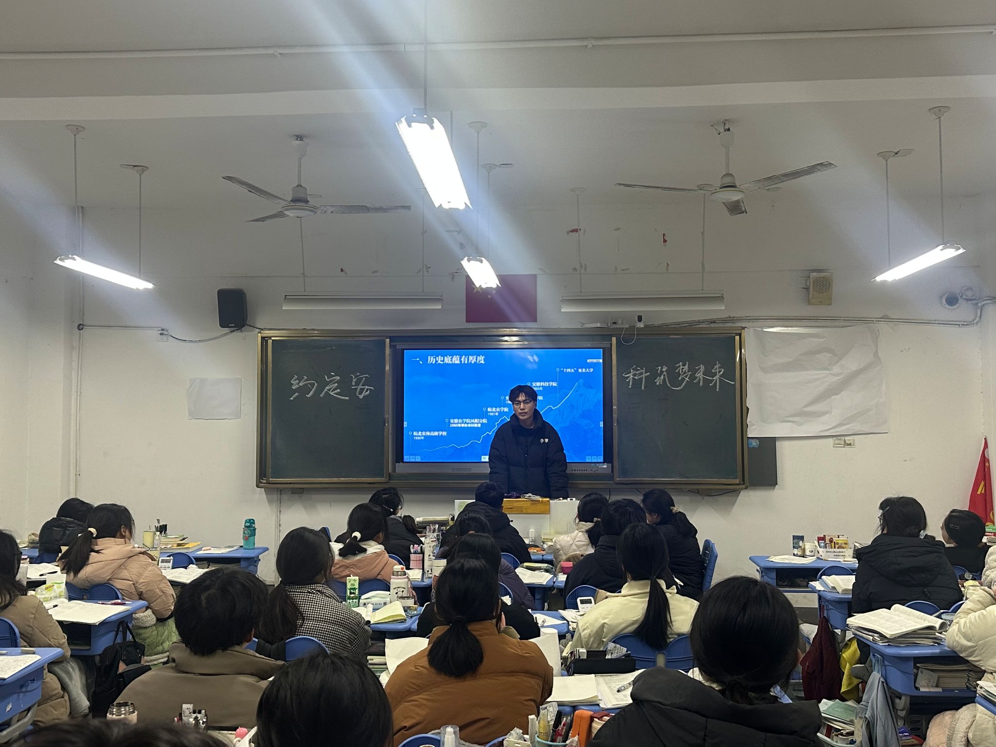在高中班主任的带领下,实践团队来到了高三年级20班,并开展了宣讲活动。从学校的历史底蕴,发展前景,学科专业,教学条件,人才培养,人才培养质量等多个方面向同学们详细的介绍了开云官方网站_开云(中国)股份有限公司,。同时播放了“约定安科,筑梦未来“的宣传短片,让同学们直观深刻的认识了开云官方网站_开云(中国)股份有限公司,。实践团队成员李文康向同学们讲述了自身高考经历,解答了同学们关于高考的种种疑问,也向同学们讲述了自己的学习方法和经验,同时祝愿全体学生金榜题名,以梦为马,不负韶华。