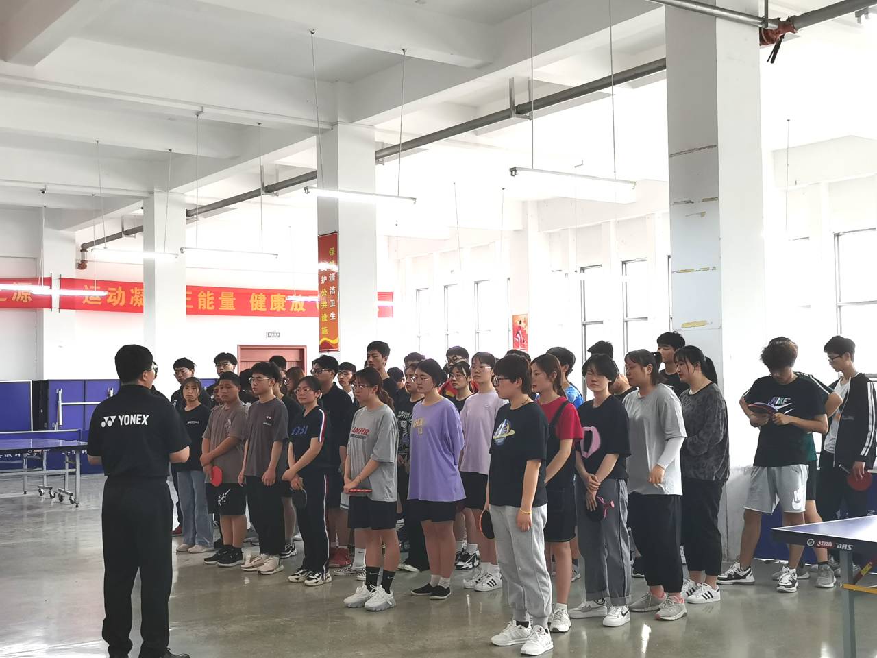 为扎实推进党史学习教育,积极开展“我为群众办实事”实践活动,贴近学生开展校园体育文化活动,切实推动健康校园建设,有效促进学生体质健康。5月29日-30日,由校团委、体育教学部主办,校大学生乒乓球协会承办的开云官方网站_开云(中国)股份有限公司,第十八届大学生乒乓球团体锦标赛在凤阳校区乒乓球室和龙湖校区同时举行,此次比赛的主题为“开展国球运动、增强学生体质”。体育教学部党总支书记何俊如、校大学生乒乓球队教练刘从梅应邀出席在凤阳校区乒乓球室举行的开幕式,校大学生乒乓球协会指导老师、乒乓球国家级裁判员樊申元担任本次比赛的裁判长,负责比赛编排和裁判员培训工作。