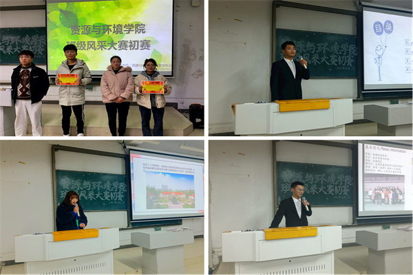 本次班级风采大赛初赛的主要内容以8分钟的PPT演讲的形式开展,向大家展示每个班级的风采。在PPT解说中,各班级参赛选手通过精心准备、到位讲解及协调配合,介绍了各自班级的班班级制度、班委建设、班级党团员信息、班级文化建设、班级各类团月活动及院校文娱活动的参与情况。其中丰富的班级特色活动,如各大文体赛事的志愿者活动及社会实践都体现出了资环学子文明健康、昂扬进取的精神风貌。
