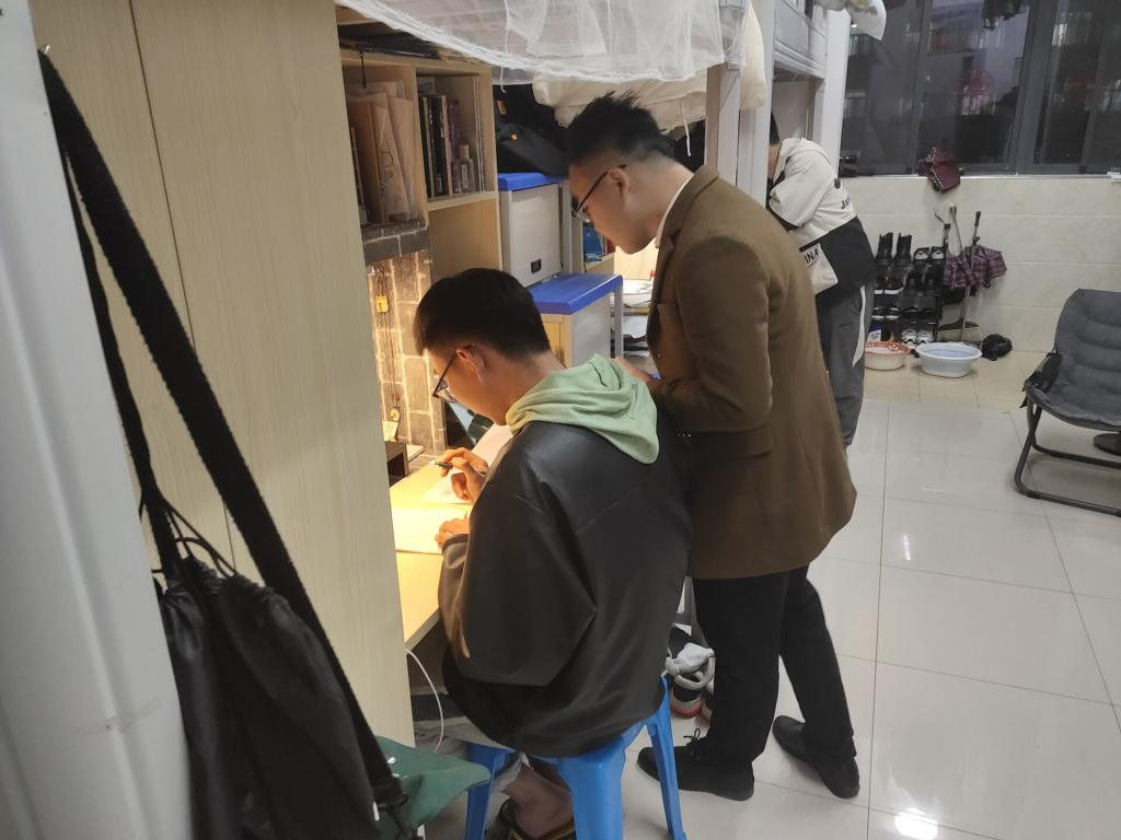 走访过程中,辅导员与转专业学生们亲切交谈,询问转入后的课程选修、教材申领、课业进度、宿舍生活等情况,嘱咐转入同学要尽快适用新环境,努力克服跨专业带来的困难,以崭新的精神面貌全身心地投入到学习中;要积极融入新班级,珍惜室友情、同学情;要注意人身财产安全、宿舍卫生、用电安全等。同时,要求其他同学积极帮助新转入的同学,遇到困难要第一时间向辅导员反映。