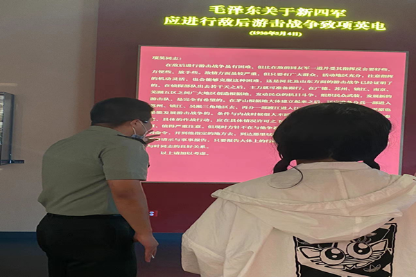 实践团在纪念馆特聘讲师的引导下,从展厅内一幅幅历史照片、一件件历史文献和革命文物,感受着当年新四军波澜壮阔的峥嵘岁月。革命先烈们坚定的政治信念、英雄壮举、为民情怀、铁的风骨,让大家了解历史、感知精神、认识文化。实践团成员还通过参与馆内志愿服务、交流研讨、话题互动、视频展播等形式,畅谈对党的奋斗史、新中国的发展史、改革开放的实践史的新体会。同时,结合自身专业或特长,通过调研报告、组图、笔记、短视频、访谈录等方式感悟党的奋斗历程,以实际行动践行“请党放心,强国有我”的青春誓言。