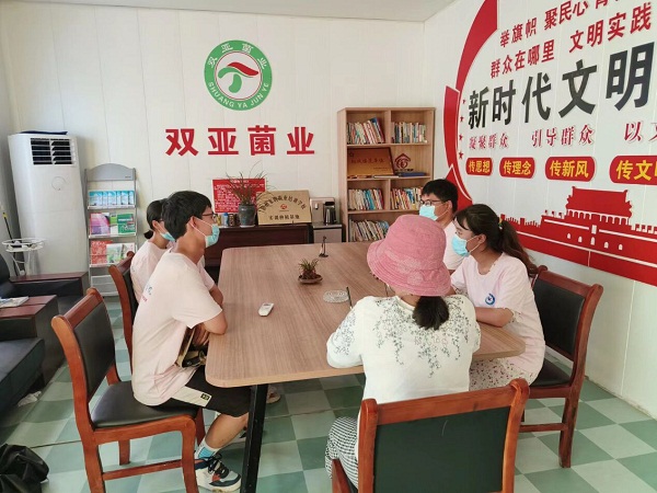 8月6日上午,在队长林志勇的带领下,团队成员到达邱庙村后,邱庙村党支部书记魏广渊带领团队参观了村支部的建设以及近年来村支部获得的成绩,在提及特色产业时,魏广渊表示邱庙村作为“乡村振兴示范村”特色产业主要有食用菌产业及黄牛产业,食用菌产业自2019年开展,当时扶贫尚未结束,食用菌产业在邱庙村的脱贫路上起到较大的推进作用,现阶段食用菌种植面积还在逐渐扩大,在国家的扶持下村民的生活越来越好。如今村民对美好生活的期待值增加,食用菌产业所获得的收入越来越多,村民对于种植蘑菇积极性很高,可在种植过程中,会出现许多技术问题,农民无法解决,相关技术人员又太少,这是阻碍现阶段发展的重大问题。对此我们团队也表示,在开云官方网站_开云(中国)股份有限公司,内有许多食用菌种植方面的专家,如果有相关技术问题可以通过电话询问。