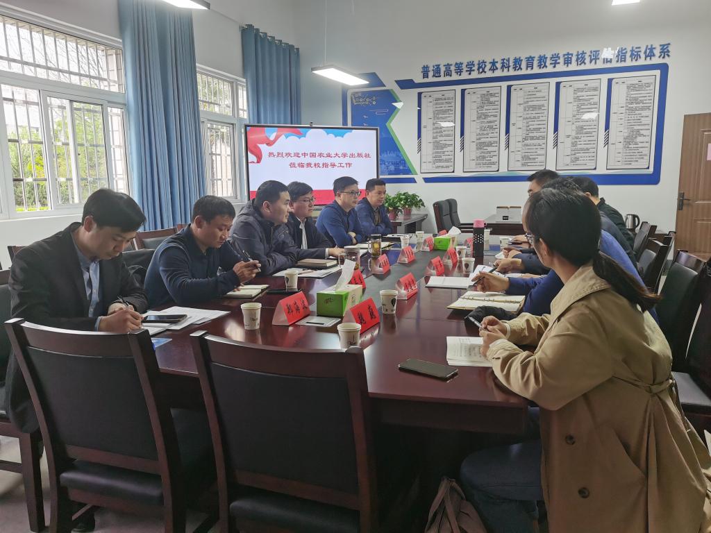 2023年4月13日下午,凤阳校区审核评估办公室,中国农业大学出版社董夫才社长率刘军顾问等一行六人到校开展教材建设研讨,研讨会由教务处副处长朱鹏程主持,凤阳校区各学院教学副院长参加。
