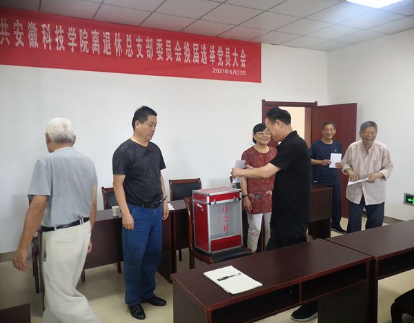 6月23日上午9时,离退休党总支在离退休会议室召开总支部委员会换届选举党员大会,离退休总支上一届总支部委员会委员在主席台就坐,总支32名党员参加了大会,会议由离退休党总支委员仲正林主持。